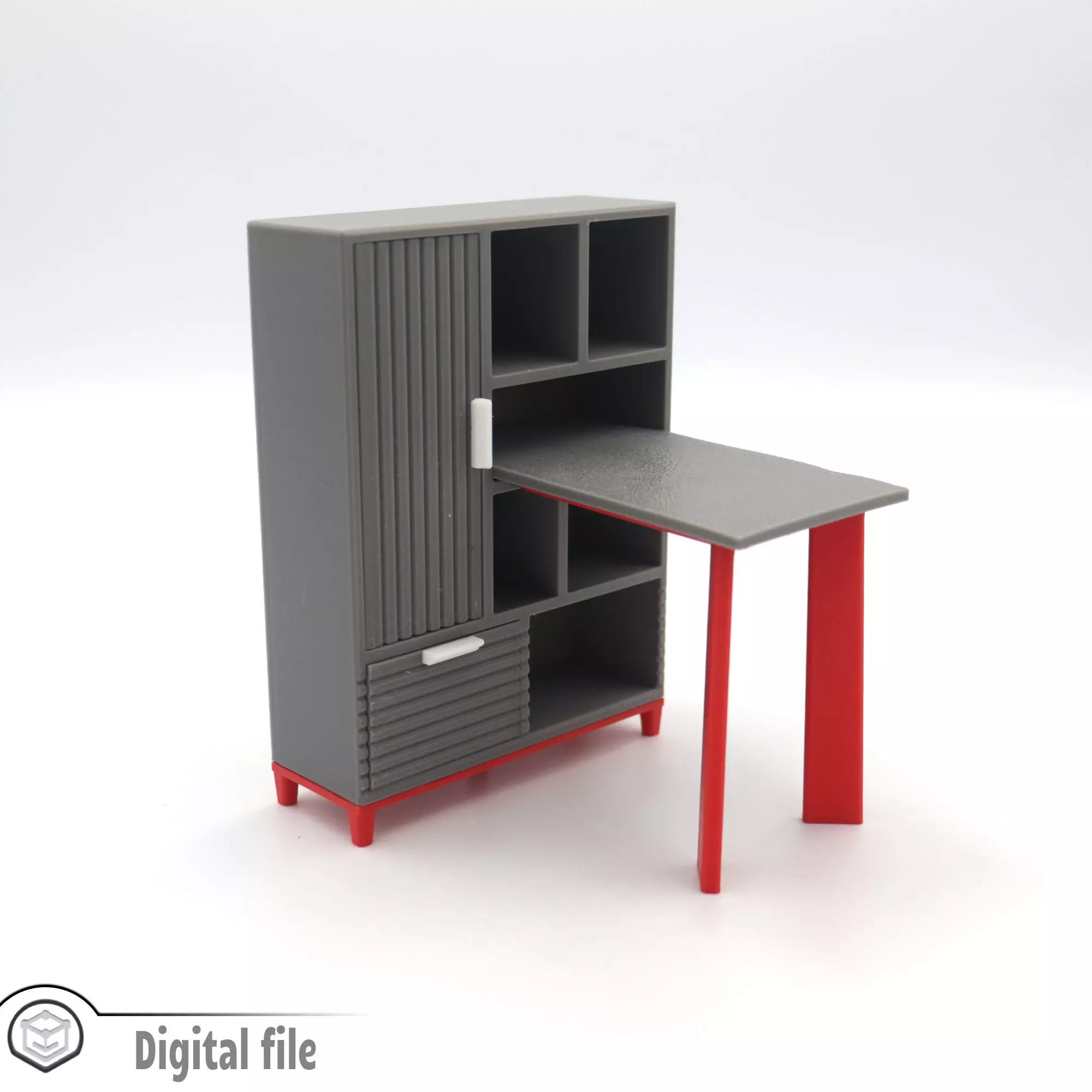 Introducing our collection of desks for your dollhouse.The files are provided in 3MF format, which can easily be used in your slicer for multi color printing. The doors will slide into the main body and will let you close/open the door. A door stopper is designed and will be printed with the main body to avoid any misalignment of the doors.You will find in ZIP file - the main body, 1 door and 2 drawers. For multi color printing, select the component from object list (P.S. your slicer will need to support 3MF file format. If you need the files in STL format, please let us know).
