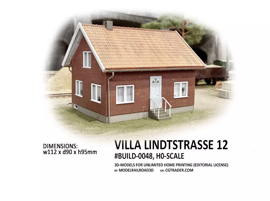 The set contains all items neccesary to build a H0-scale model of the villa on Lindtstrasse 12. Ready-to-print super detailed items set for H0-scale Model Railroad. The villas has been developed and test printed, built and painted to verify function, detail and printability. Testing has been performed on a range of (4k, 6k and 8k) consumer grade resin printers. Simply download, un-zip, slice, save to USB and print. Enjoy!Each part has two stl-files included: One stl-file with support (for resin printers) and one without supports. This way you can customize your print if you like.