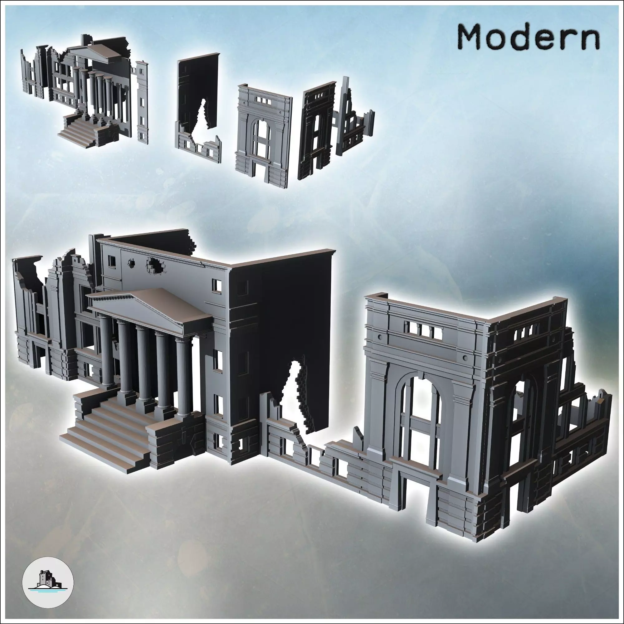Destroyed neo-classical building with a grand pediment entrance 3D print model