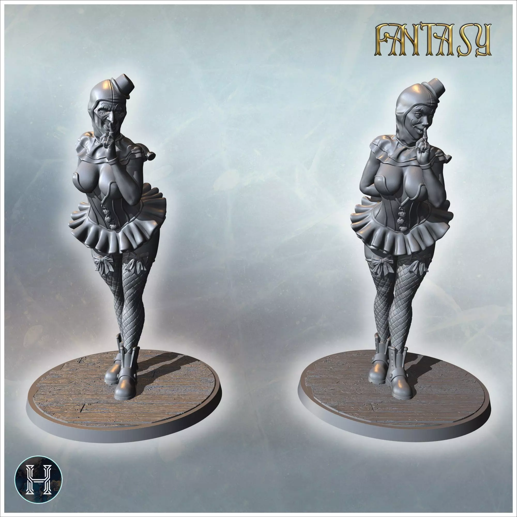 Duo of playful clown women with detailed corset ruffled skirt an 3D print model