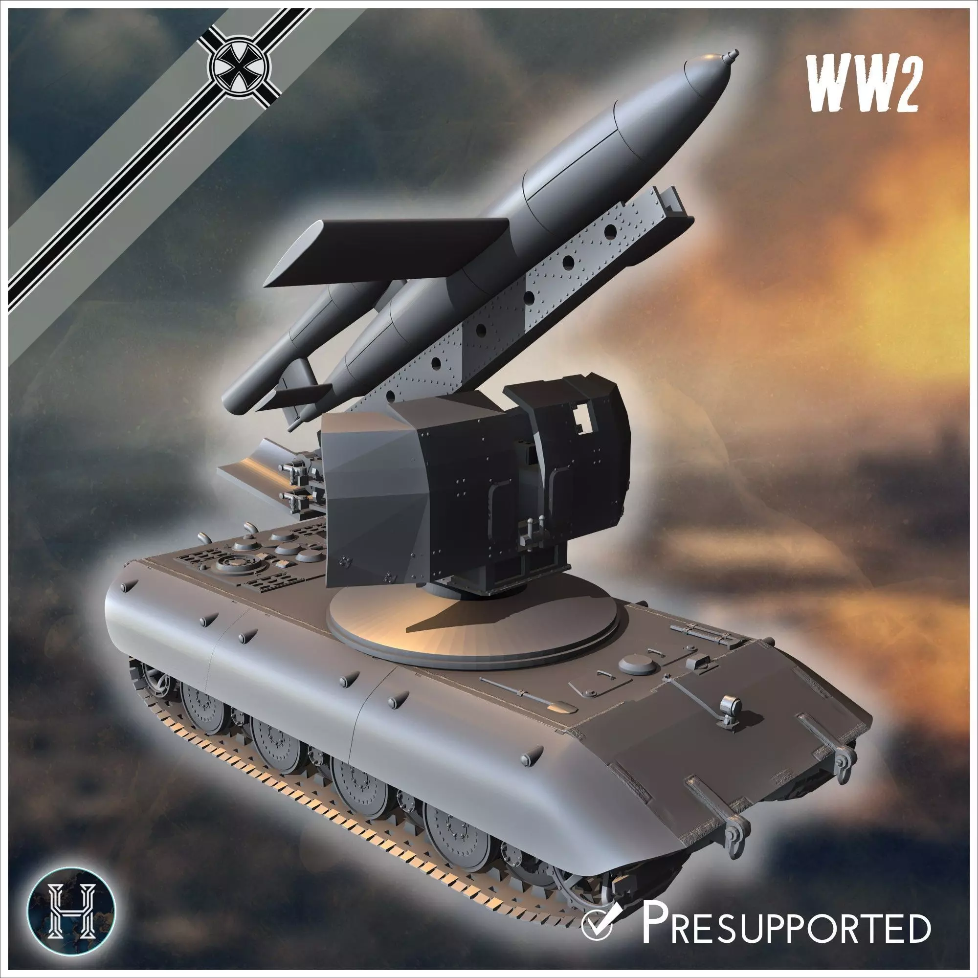 E-100 mit Raketenwerfer V-1 Rakete Entwicklung rocket artillery 3D print model