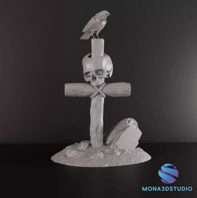 Bring atmosphere and dark realism to your tabletop or resin diorama with this highly detailed gothic cross miniature, featuring a skull, corvid, and textured base.This STL set is perfect for fantasy wargaming, horror-themed scenes, or display printing.