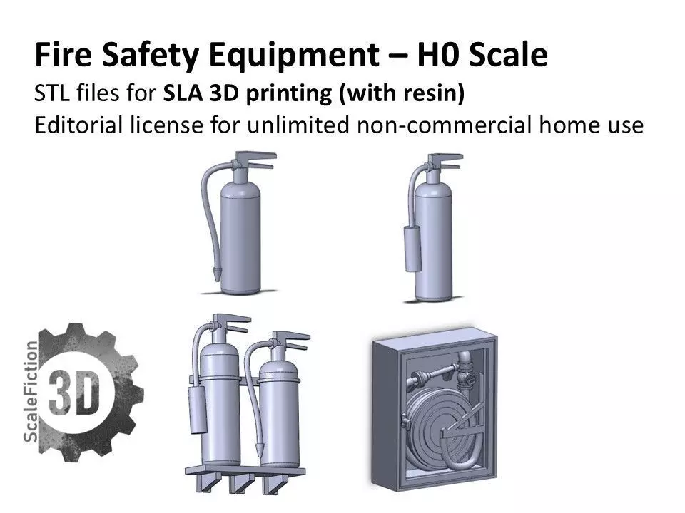 Includes:4 STL files – Fire Extinguisher, CO₂ Extinguisher, Wall-Mounted Fire Hose Reel, Wall mount with both extinguishers on it.
