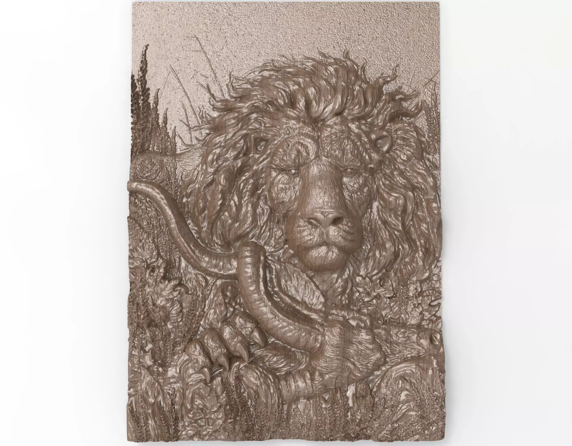 This stunning 3D bas-relief captures the raw power and elegance of a lion in mid-hunt with exquisite detail and artistic mastery. Every element—from the lion’s fierce expression to the flowing textures of the background—has been sculpted with precision for a visually striking result.