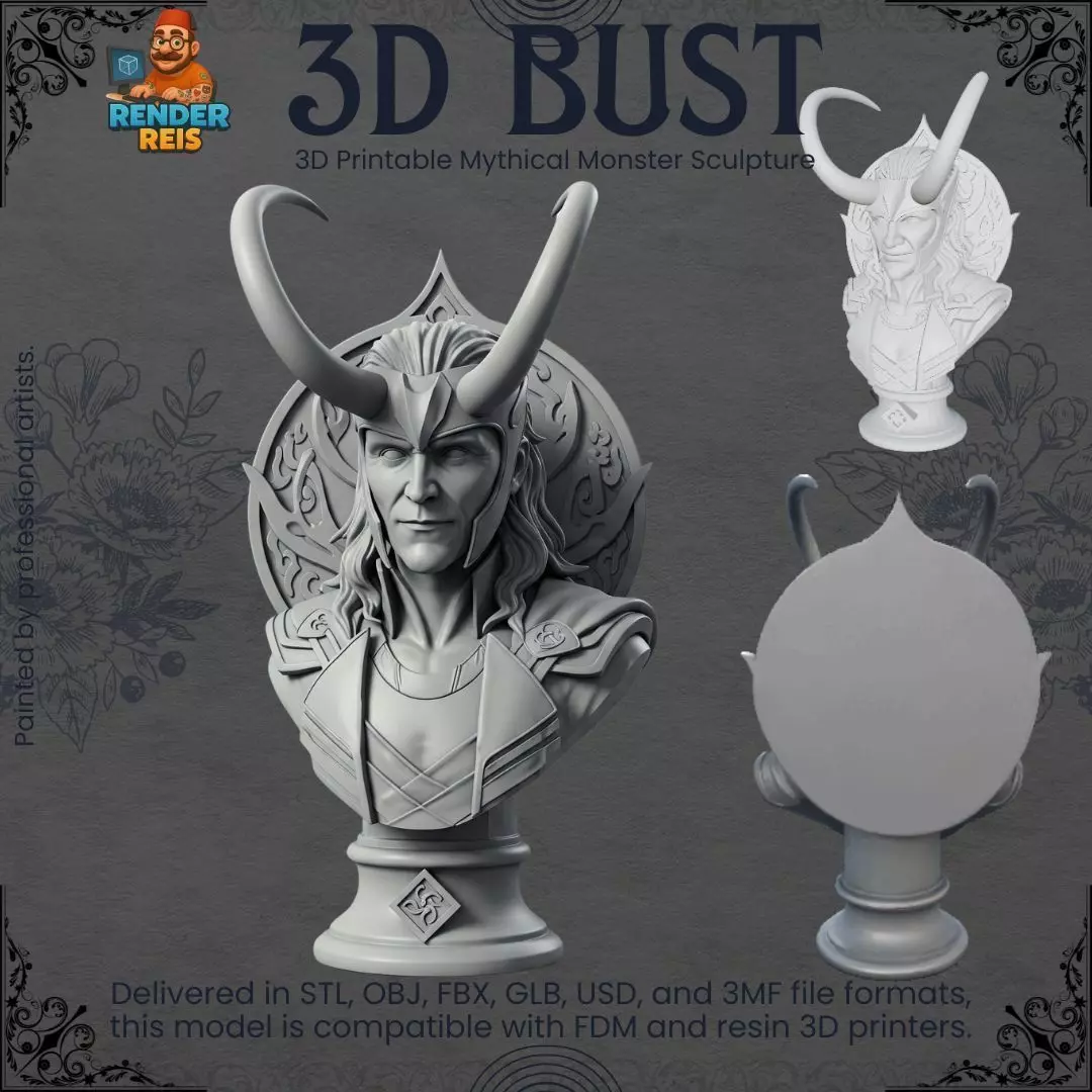Summon the God of Mischief into your realm with this highly detailed Loki bust 3D model, inspired by both Norse mythology and the Marvel cinematic universe. Featuring Loki’s signature curved horned helmet, mischievous smirk, sharp facial features, Asgardian armor, and flowing long hair, this bust captures the cunning and charisma of one of mythology’s most iconic figures.