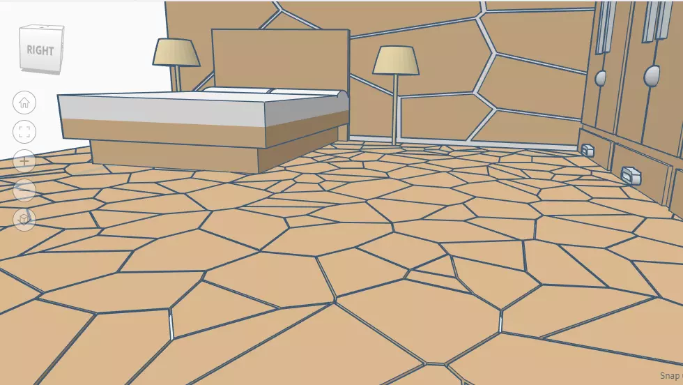 This is my new design of master bedroom furrniture. In this model I have made moddern furniture for a master bedroom. In this design there is a king size bed with pillow and blanket, and bedsheet. The colour of the furniture is beige colour. And whenever you make this furniture in your room buy a glossy sunmica. There is a dressing table which has three drawers which will give you more space to keep your beauty products. There is also a voronoi design walls and flooring which gives a high sophesticated lookto your master bedroom. Theere are night lamps beside the bed which will give you more comfort and effeciency at night. In this design there is also a TV which will entertain you any time. Hope you like this design.