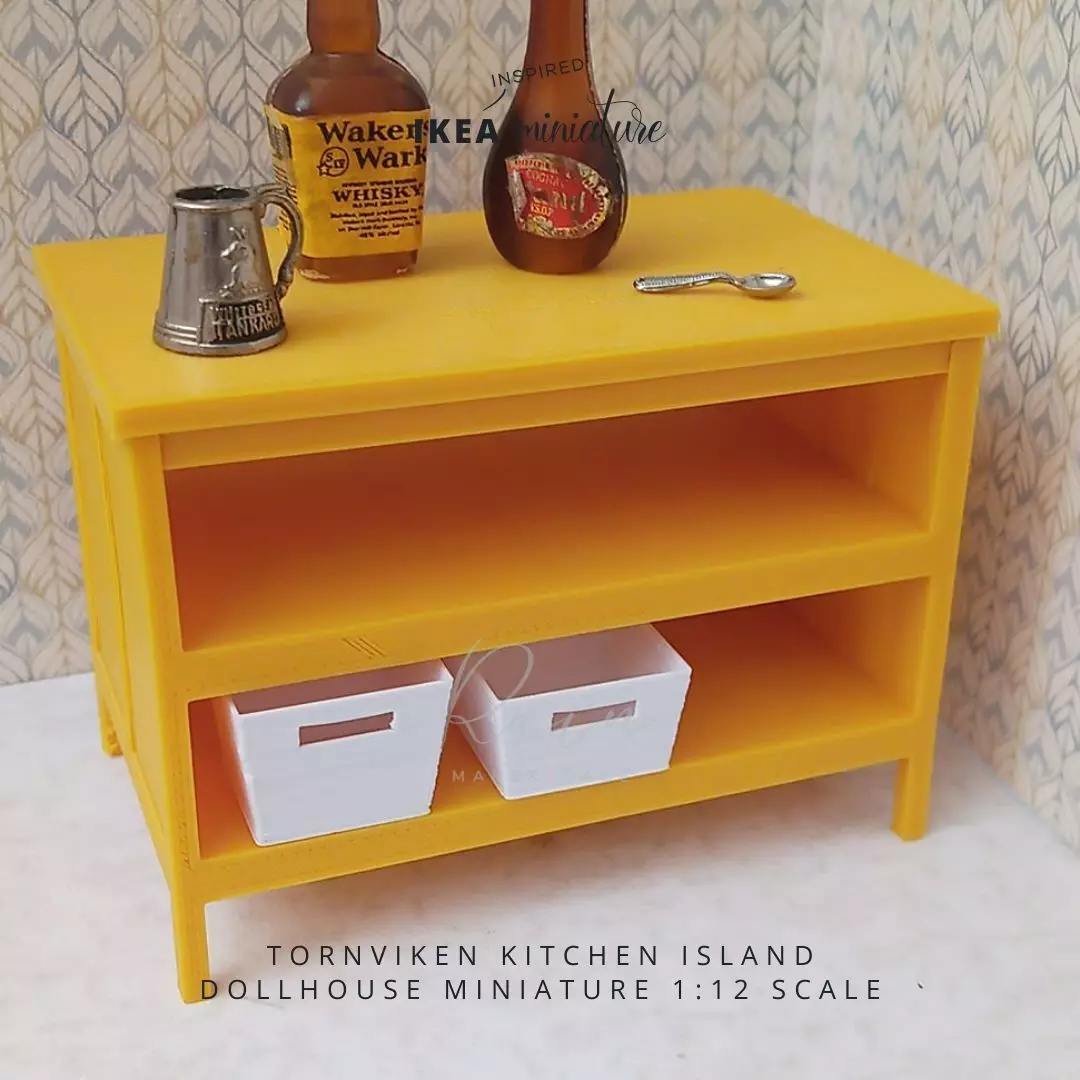 Featuring the same stylish design and functional elements as the real-life TORNVIKEN Kitchen Island, this miniature version is a perfect addition to your dollhouse or miniature kitchen collection.