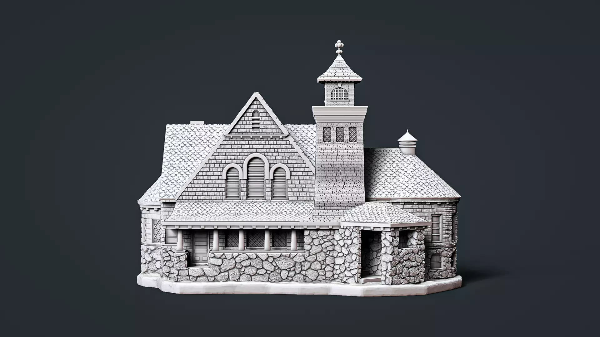 - all architectural elements present (chimneys, gutters, brackets, window muntins)File supplied in 1:75 (N-scale).The buyer can easily rescale the model in any slicer to any desired size (HO, OO, 28–32 mm, 1:100, 1:87, etc.).Optimized for both FDM and resin printing (minimum wall thickness 0.8 mm).Model is split into logical parts for easy printing with minimal supports.