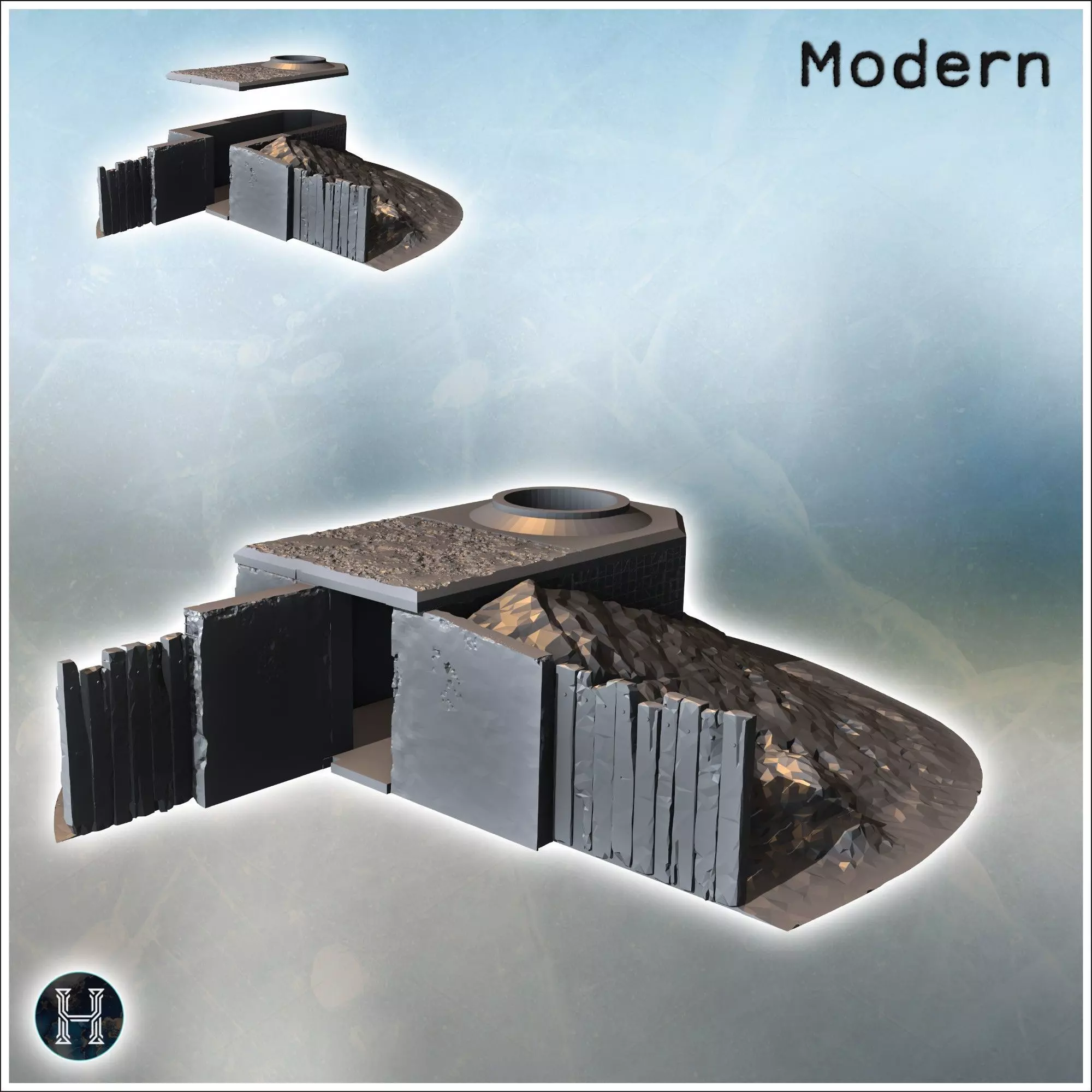 Protection bunker with earth mound and wooden wall 4 - Modern WW 3D print model