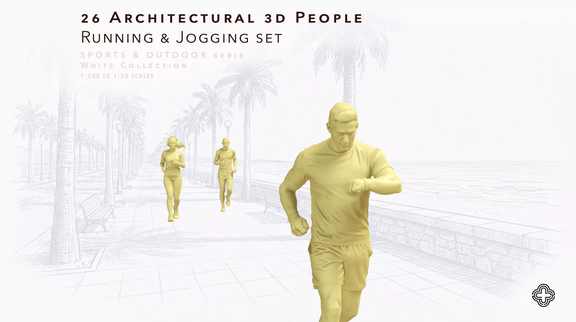 Running & Jogging est un kit de personnages réalistes conçu pour les maquettes d'architecture et l'archviz, centré sur les activités dynamiques (jogging urbain, parcs, promenades). Le set comprend 26 sculptures numériques uniques en mouvement (échauffement, jogging décontracté, course intense). Les poses restent lisibles à petite échelle grâce à des silhouettes claires et des gestes soigneusement construits, adaptés aux pistes de course, berges, campus et espaces publics contemporains.