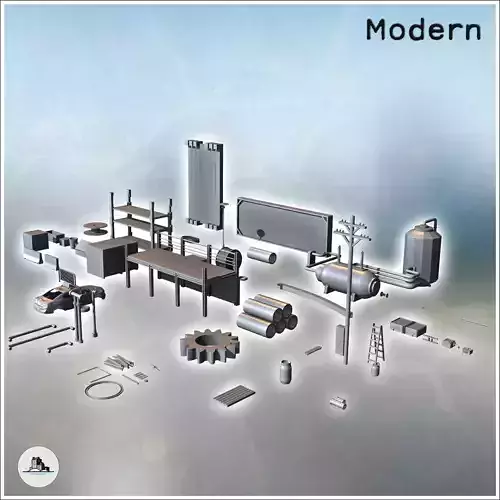 Set of modern outdoor accessories with car carcass advertising s 3D print model
