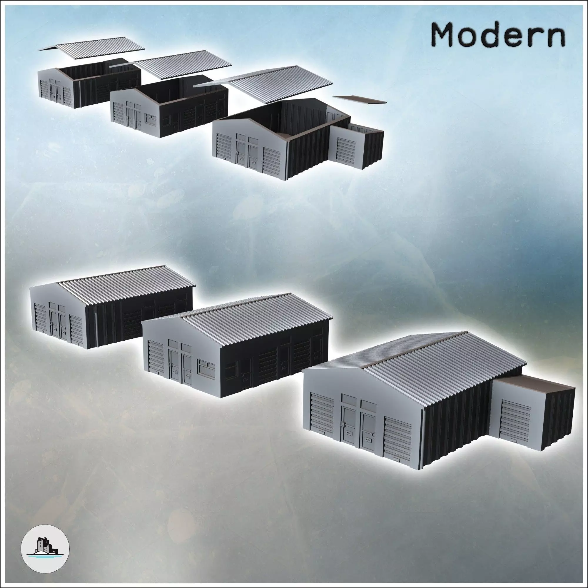 Set of three tin roof sheds with annex 10 - Modern WW2 WW1 World 3D print model