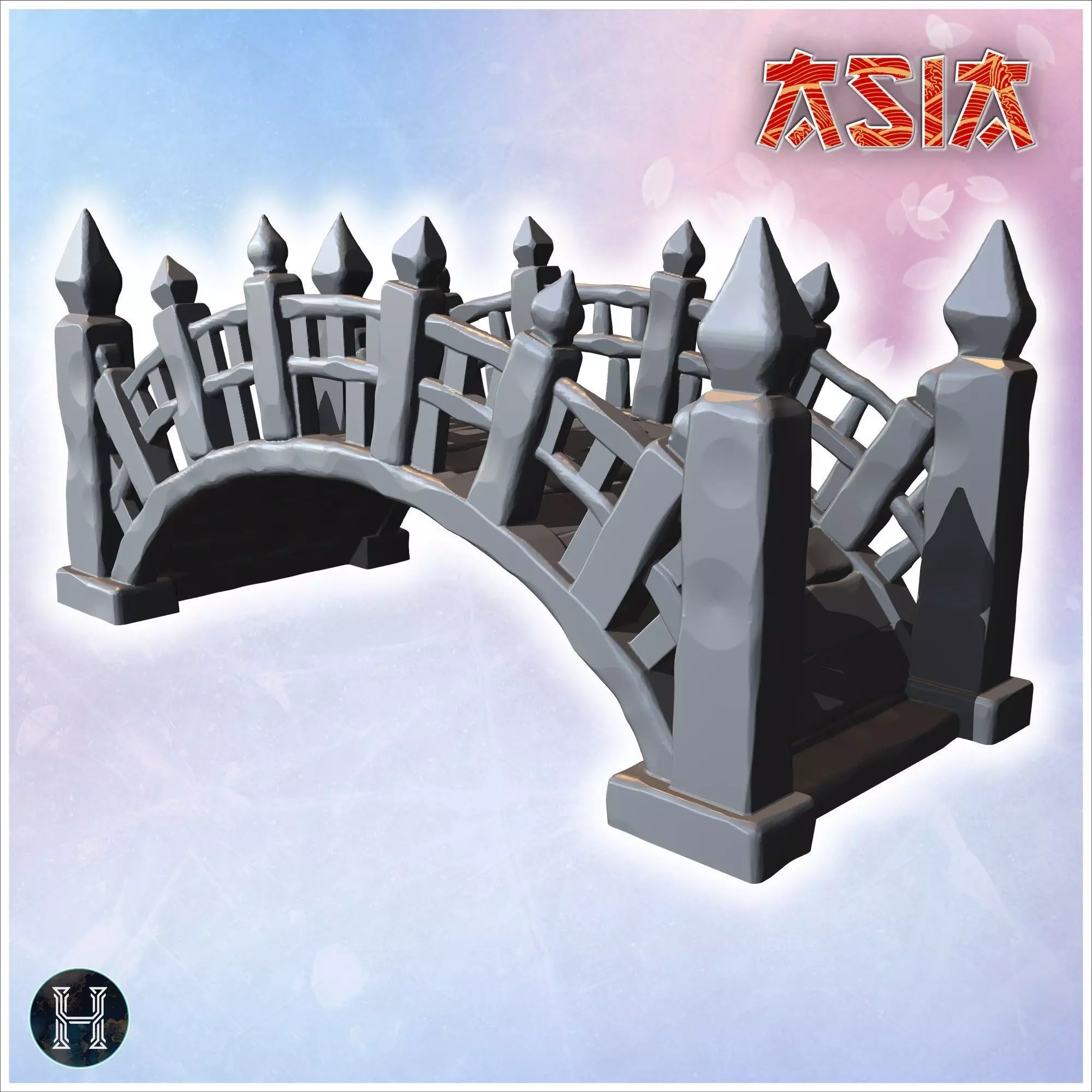 Small wooden bridge with curved design detailed posts and decora 3D print model