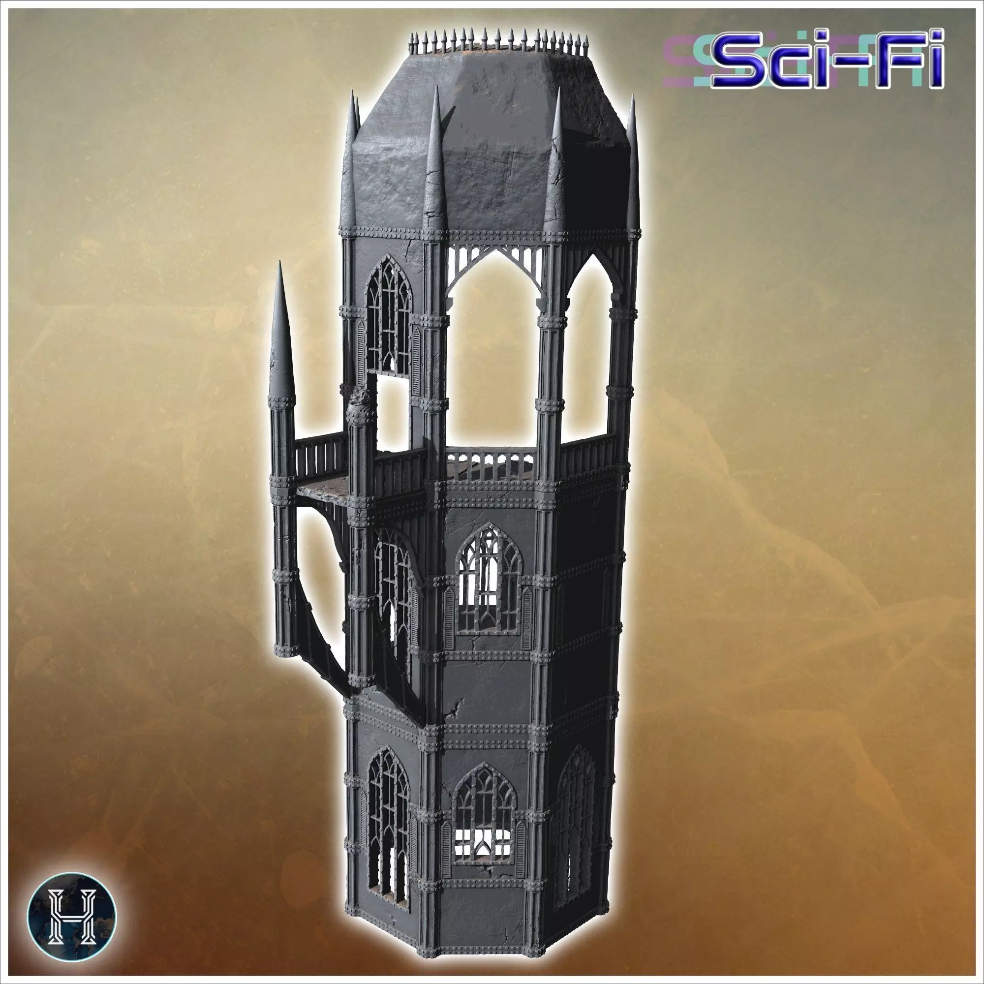 Tower-like structure with high gothic arches spiked rooftop and 3D print model