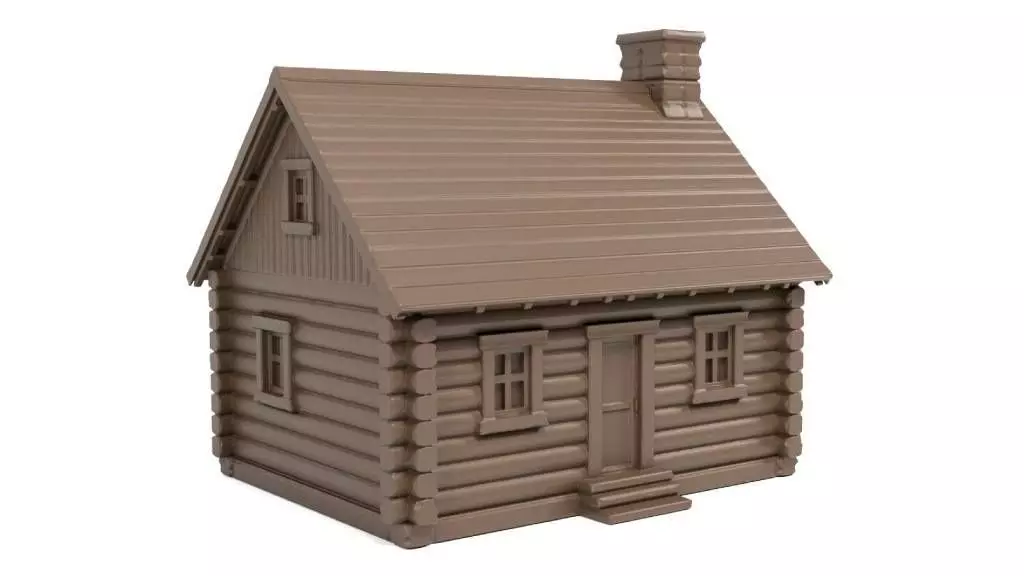 This model of a Traditional Canadian House captures the rustic charm and cozy elements typical of Canadian log houses. The clean lines of the logs and the detailed features of windows and the chimney bring authenticity to the overall look.