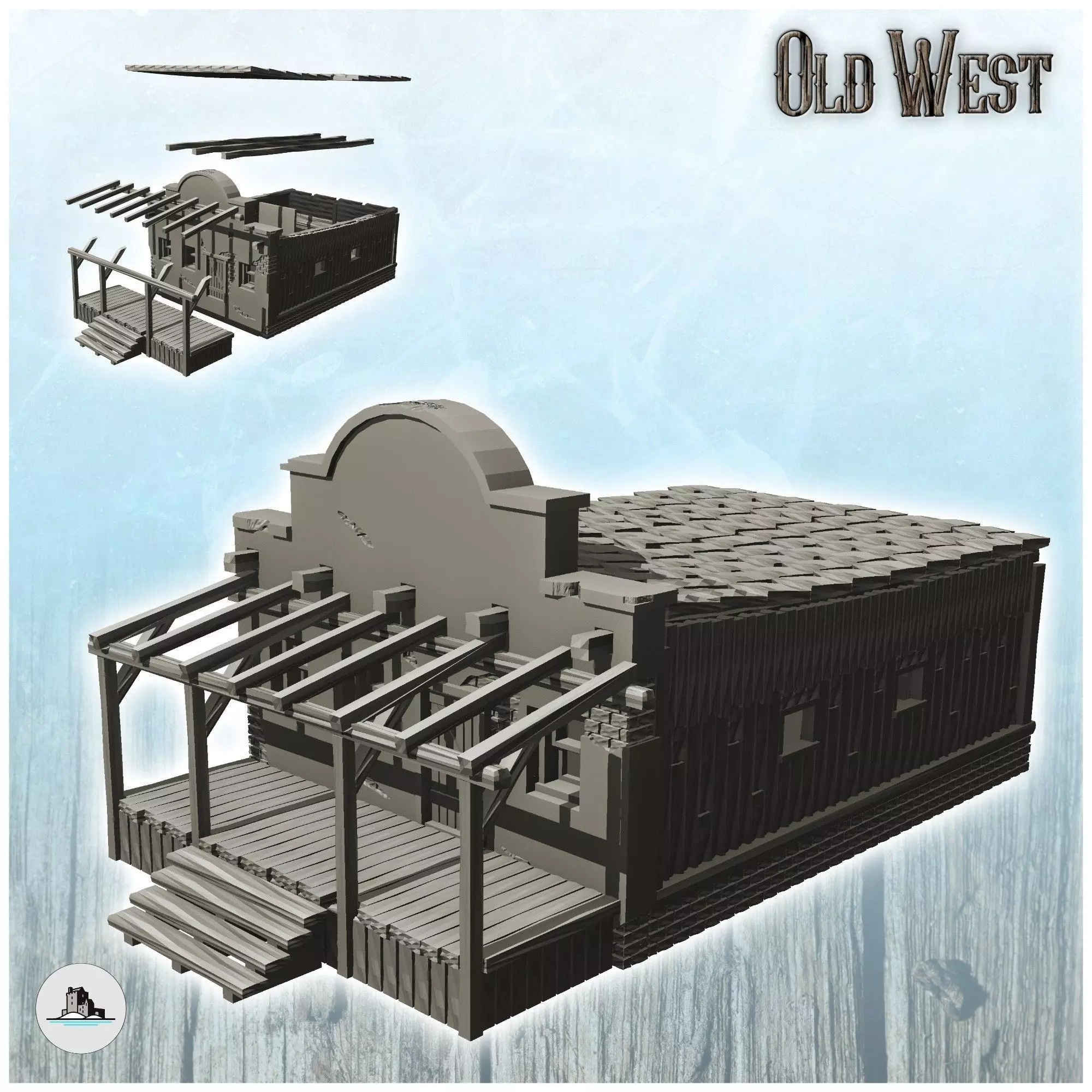 Western store with entrance awning and annex 23 - Cowboy USA Ame 3D print model