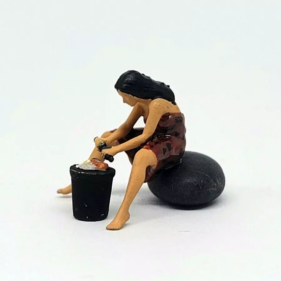 I offer a highly detailed 1/64 scale figure of Dasimah, a traditional village girl sitting while washing clothes, perfect for miniature dioramas and diecast displays. This figure adds an authentic rural touch, making your scene feel more lively and nostalgic.