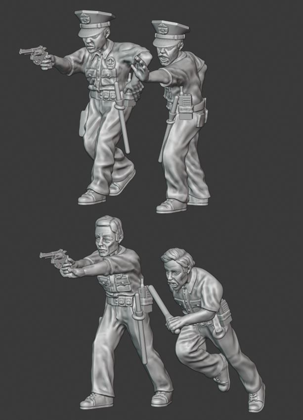 I've used LAPD as a source of references and inspiration, but alowed myseft some freedom of design to make the models more generic.As a result, they are wearing summer uniform and carrying standard-issue revolvers and radios
