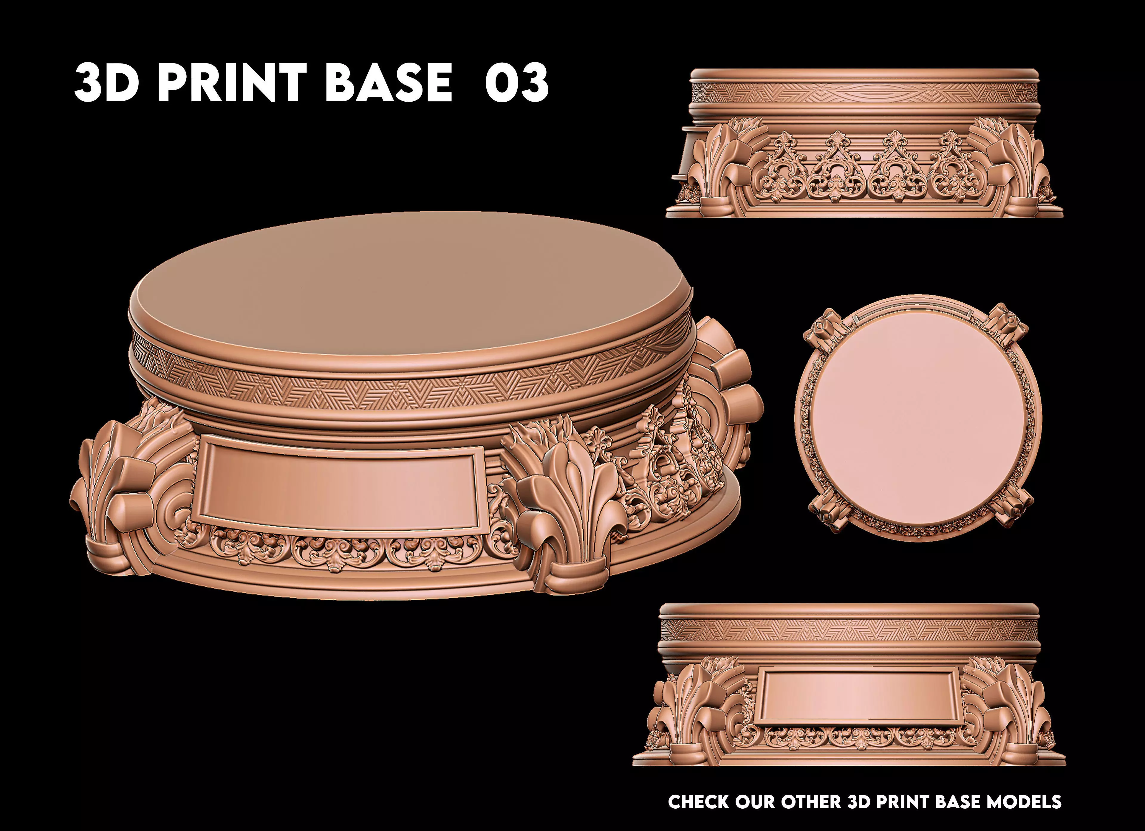 We are excited to present our latest 3D printable base platform model for statues and other prints. This model has a high level of detail and a simple mesh, making it easy to print and customize according to your needs.