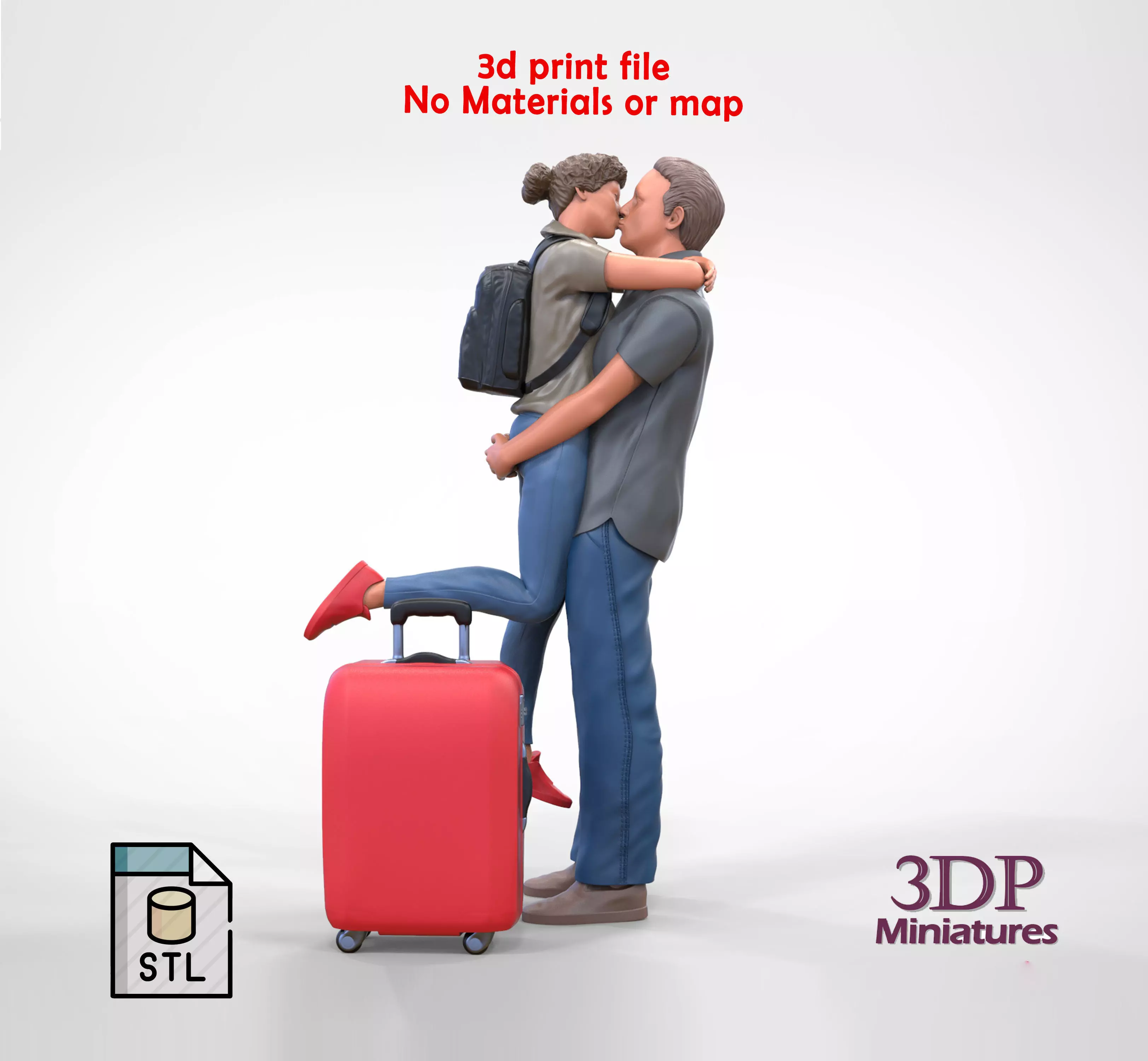 miniature, 3d print, human, miniatures, Figurines, Miniatures, Diorama, Figurine, Movie, Diecast, 3d print Figures, 3dp Miniatures, 3d printable, figure, couple, saying goodbye, station, kissing, luggage, baggage, trip, travel,