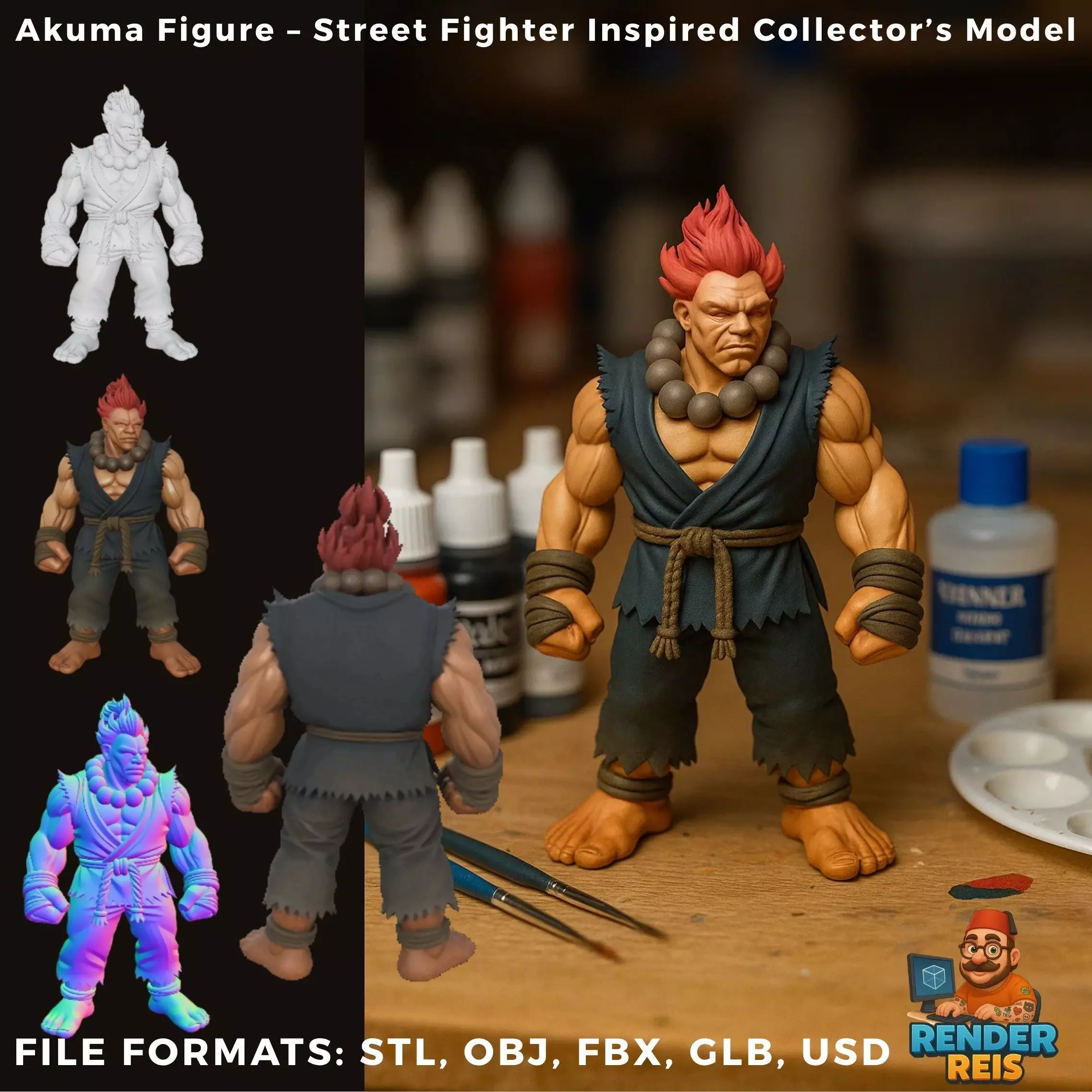 This highly detailed Akuma figure is a fan-made 3D print design inspired by the legendary Street Fighter universe. With his muscular build, intense facial expression, and iconic fighting stance, Akuma brings a fierce energy to any gaming shelf or miniature collection.