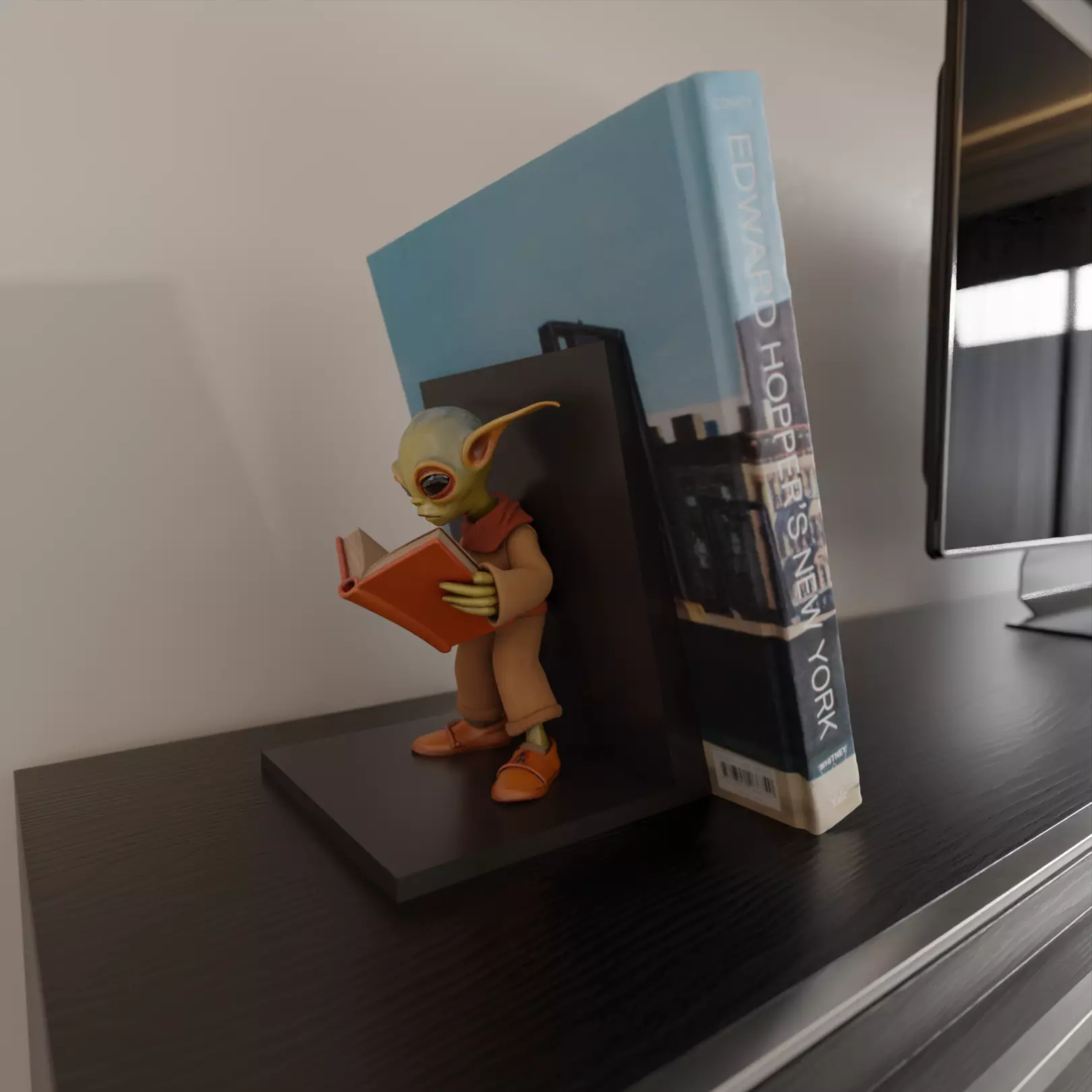 alien reading book book stand 3D print model