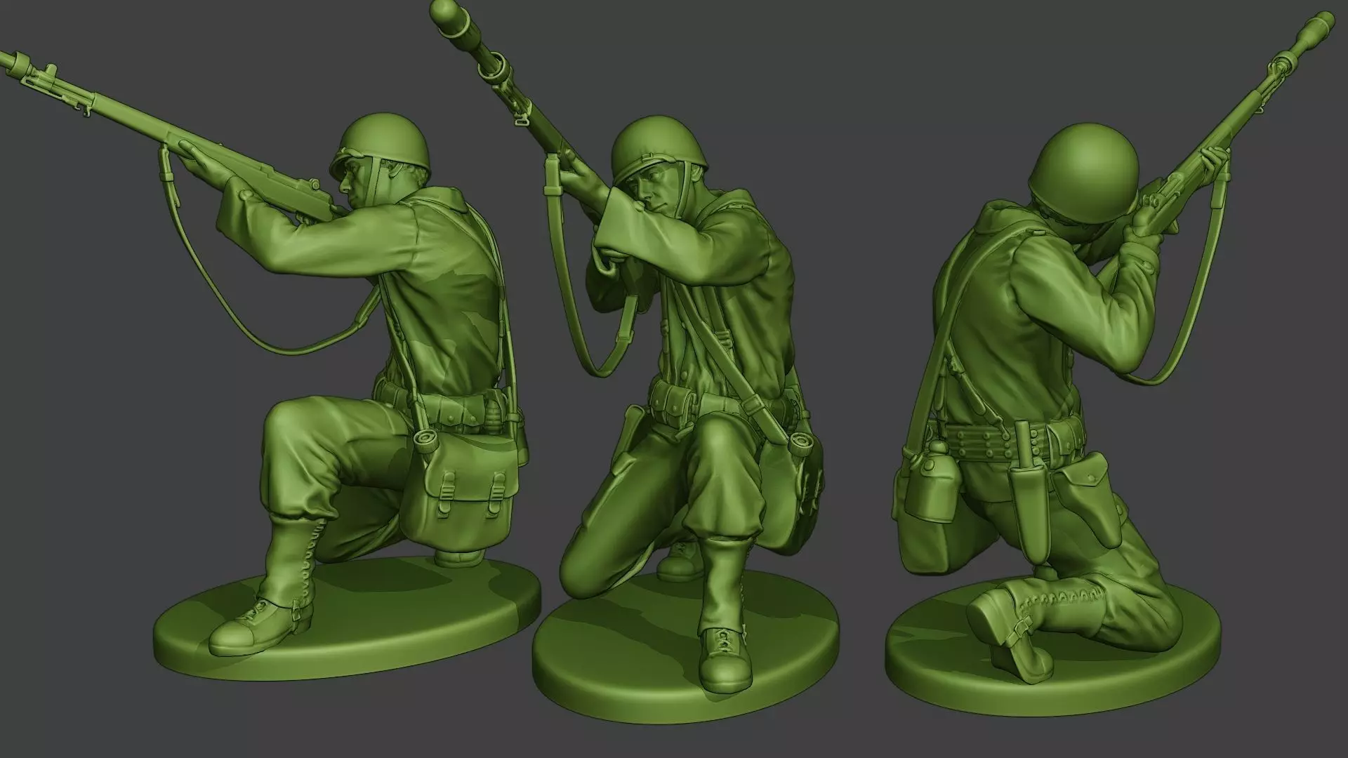 - American soldier model with guns (M1 Garand) and M7 Grenade (3d print model).