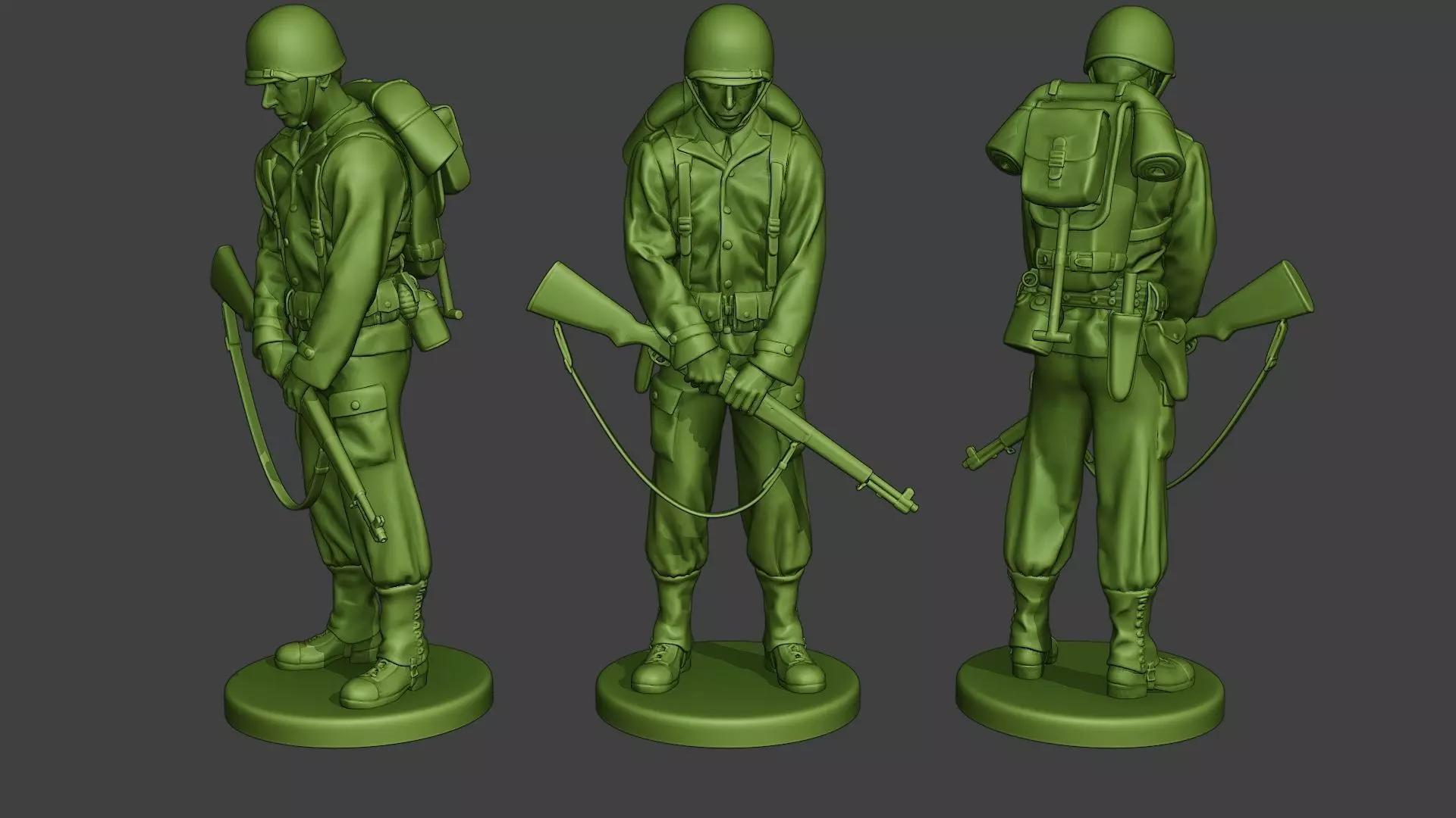 - American soldier model with guns (M1 Garand) and objects. (3d print model).