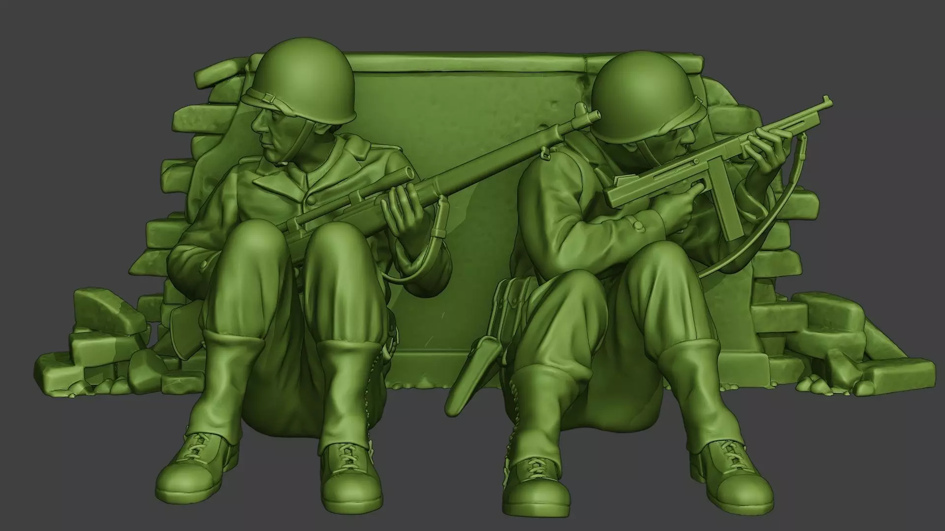 - Two US american soldiers models with guns (M1903 Springfield and Thompson M1A1) and objects (3d print model).