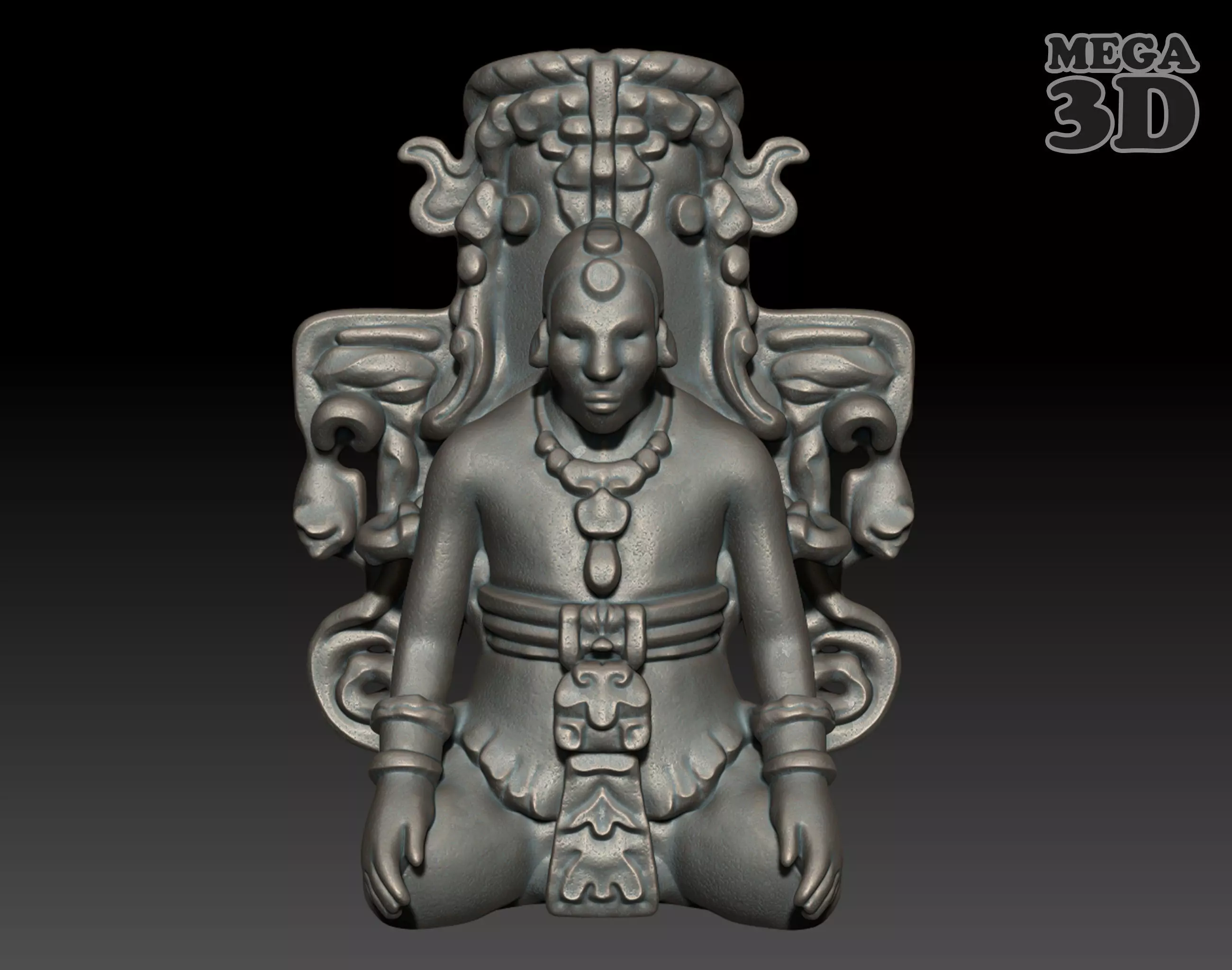 A 3D model of an ancient Mayan statue, inspired by real images of Mayan statues displayed in museums.