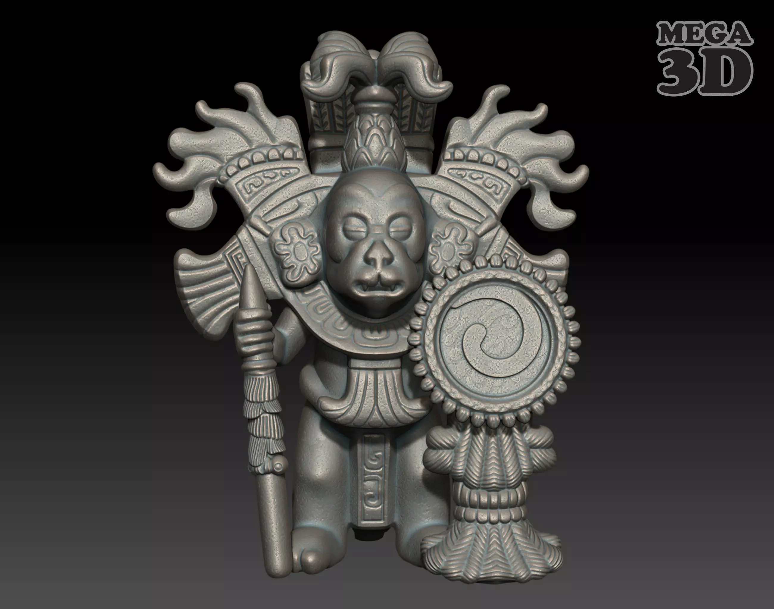 A 3D model of an ancient Mayan statue, inspired by real images of Mayan statues displayed in museums.