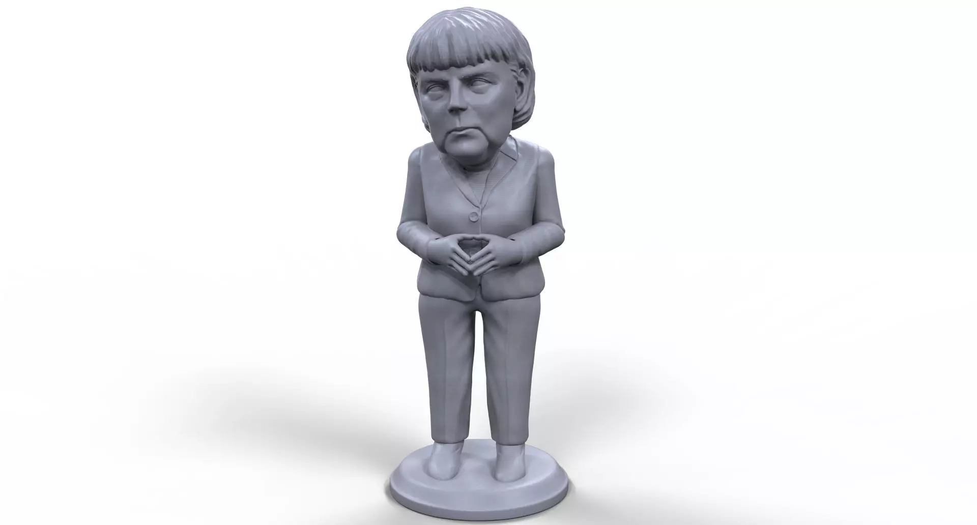 3D printable stylized sculpture caricature of German chancellor Angela Merkel. Model is ideal for board games, miniature collections and similar. I digitaly sculpted her in unique artistic style. Her proportions are not realistic.