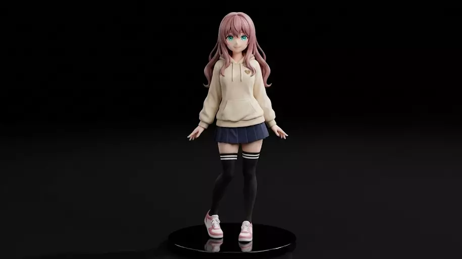 This high-quality 3D printable anime figure features a casual-style anime girl wearing a modern hoodie outfit, designed with clean proportions and a relaxed standing pose.