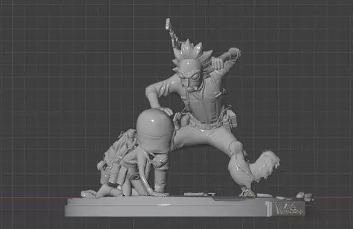 Get the highly detailed STL file for this unique fan-art piece featuring Rick, Morty, and Scrappy Doo (The Gallo), captured in a dynamic pose inspired by the ARC Raiders tactical extraction shooter.