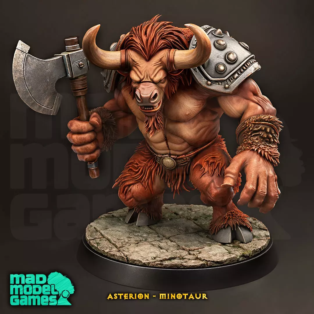 This includes the Asterion Minotaur miniature, in 28mm and 32mm scale. Perfect for a dnd monster quest or adding to a fantasy army.