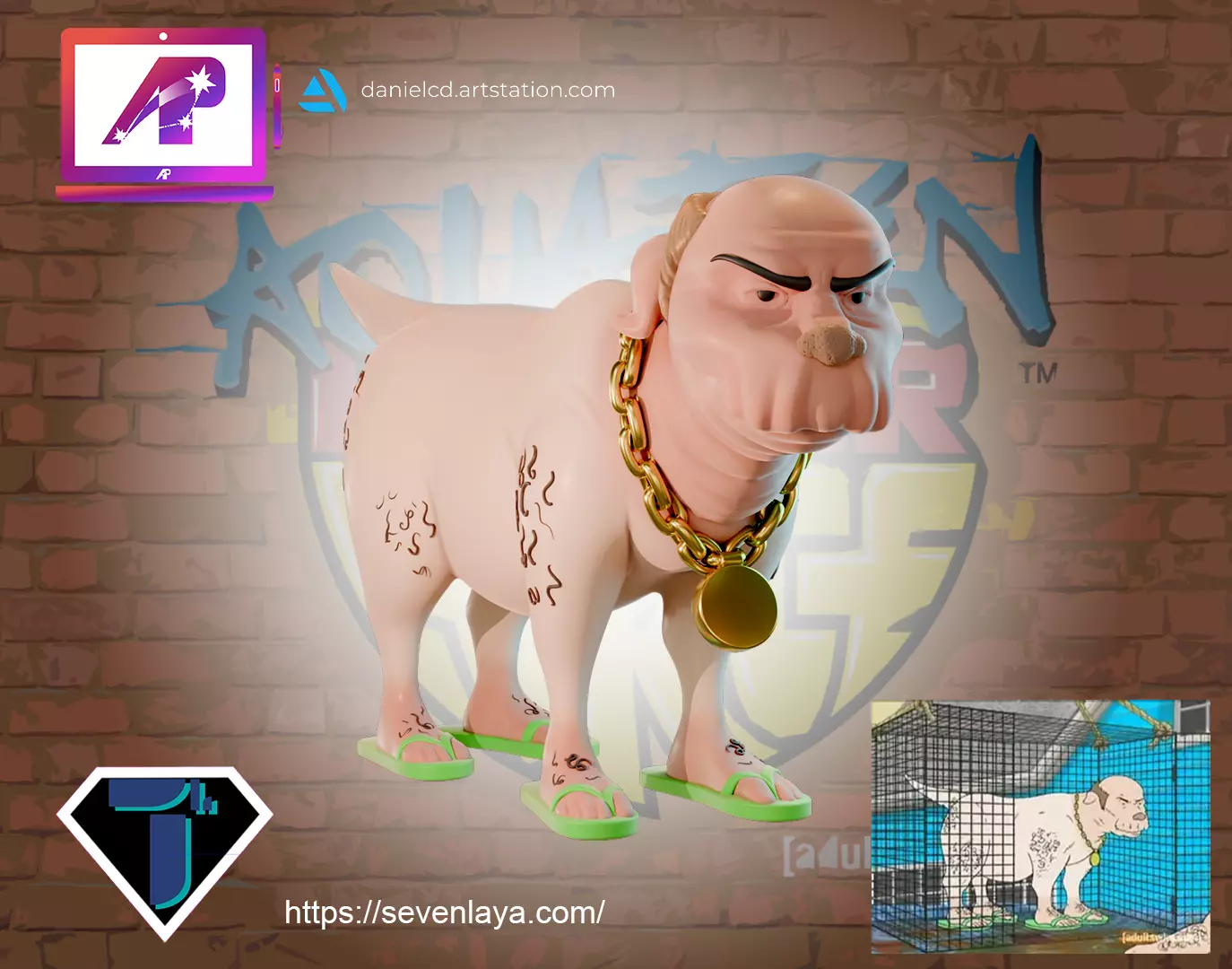 Spaghetti is a dog created by Carl with the Make Your Own Dog 1.0 software in the episode Hand Banana. Carl wanted to call him The Enforcer, but he instead wanted to be named Spaghetti. He has the same voice as Carl, along with the same sandals, tan lines, hair, and gold chain because of Carl's DNA.