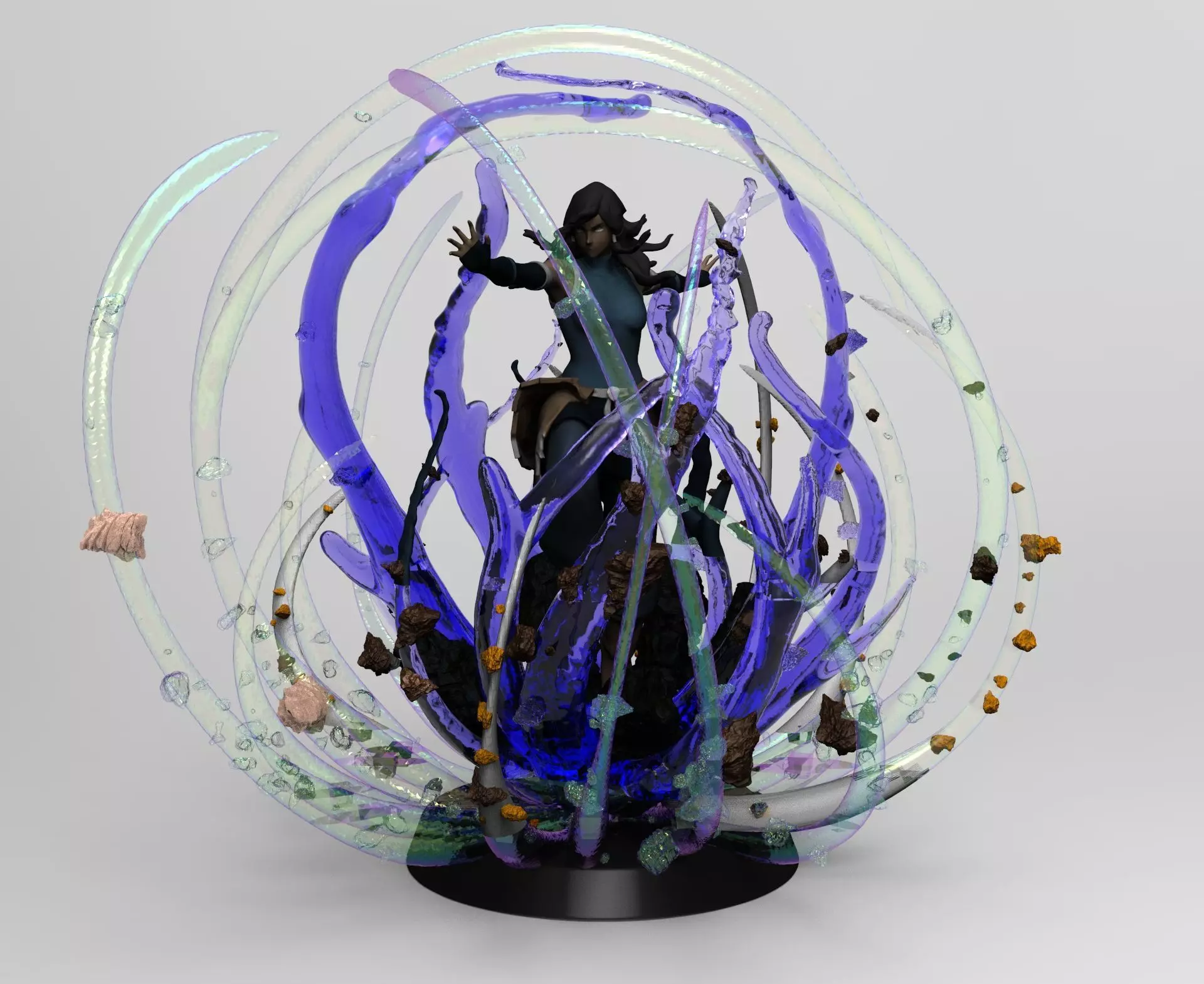 Avatar Korra Avatar State 3D print model Printable Figurine consists of 36 Parts designed to be added some water elements like resin and rocks to give you an amazing piece. 3D print model