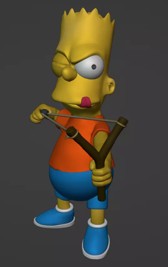 Bart Simpson is the rebellious, mischievous 10-year-old son of Homer and Marge, known for his constant pranks, skateboarding, and quick wit, despite being labeled an underachiever. While often in detention and testing the patience of authority figures, Bart possesses a hidden maturity and loyalty, occasionally displaying unexpected intelligence and a good heart, especially towards his family.Why does Bart have a slingshot?Bart Simpson's signature prank item in The Simpsons is the slingshot, which he uses frequently to create mischief. The slingshot symbolizes his rebellious nature and plays a role in many comedic scenarios in the series.NOTE: obj need to be scaled as your preference, minimun 100mm tall to avoid issues with the slingshot