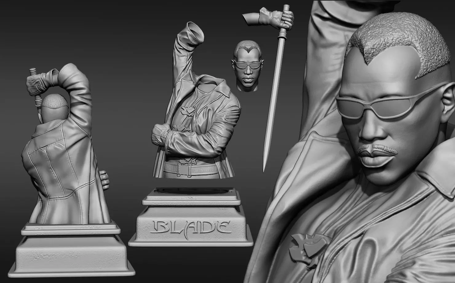 I model this bust in to 4 parts so you can print easly...you can find STL and OBJ formates..this model is base on Blade 2 movie, hope you guys like this bust