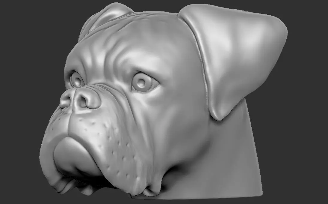 Here is Boxer dog head 3D model ready for 3D printing. The model current size is 9 cm height, but you are free to scale it. Zip file contains obj and stl. The model was created in ZBrush.