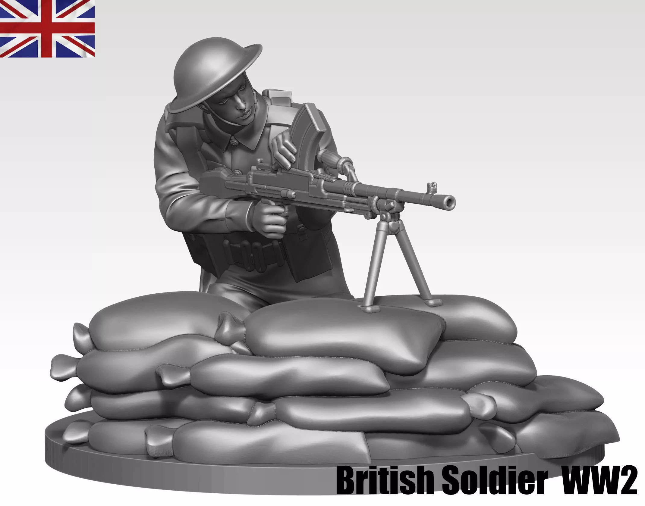 British soldier 1/35 SCALE OF THE MINIATURES. You can scale the mesh to other sizes. The height of the human figures are around 52 mm (depending on the pose of the model). Presupported, print ready.