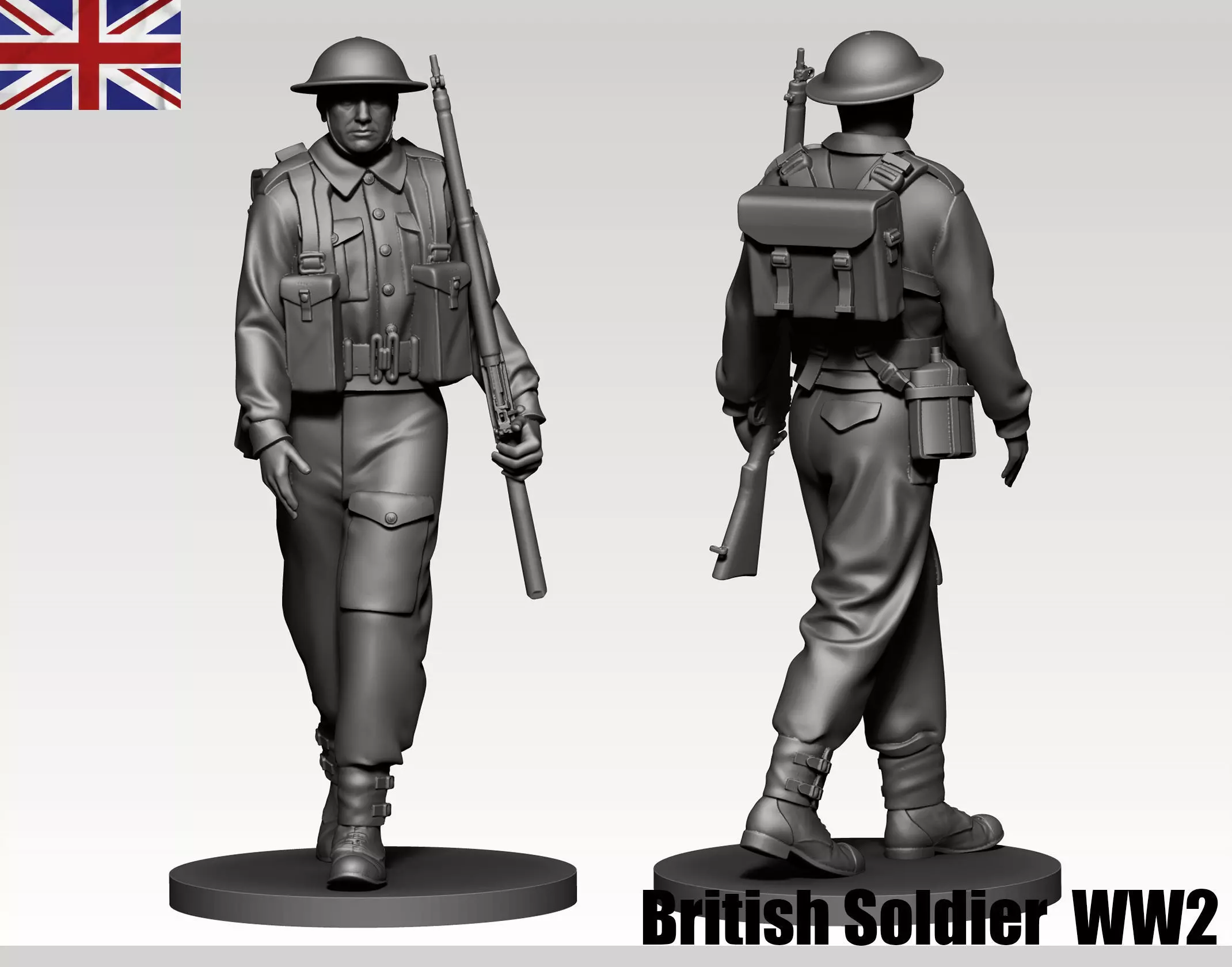 British soldier 1/35 SCALE OF THE MINIATURES. You can scale the mesh to other sizes. The height of the human figures are around 52 mm (depending on the pose of the model). Presupported, print ready.