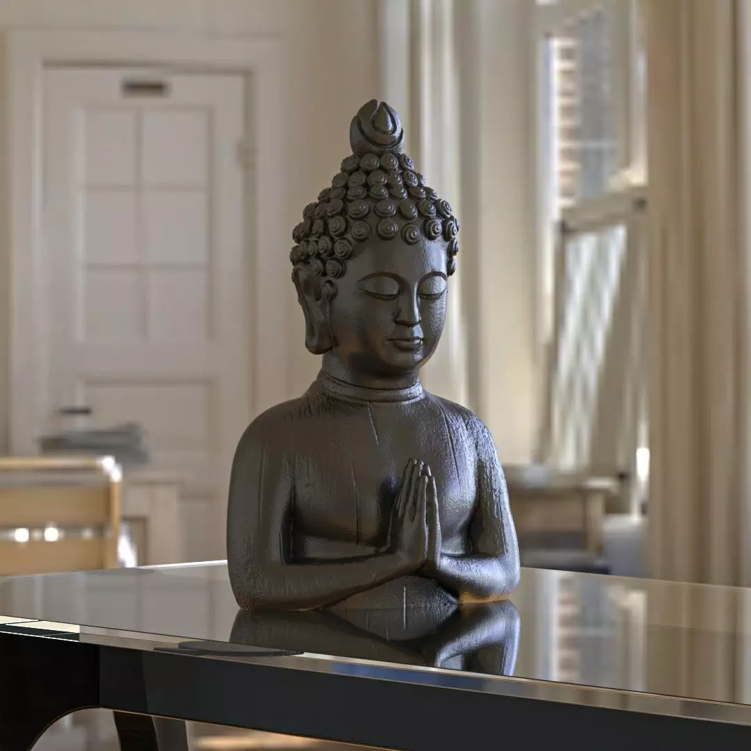 High-quality Buddha statue with detailed texture on the model.