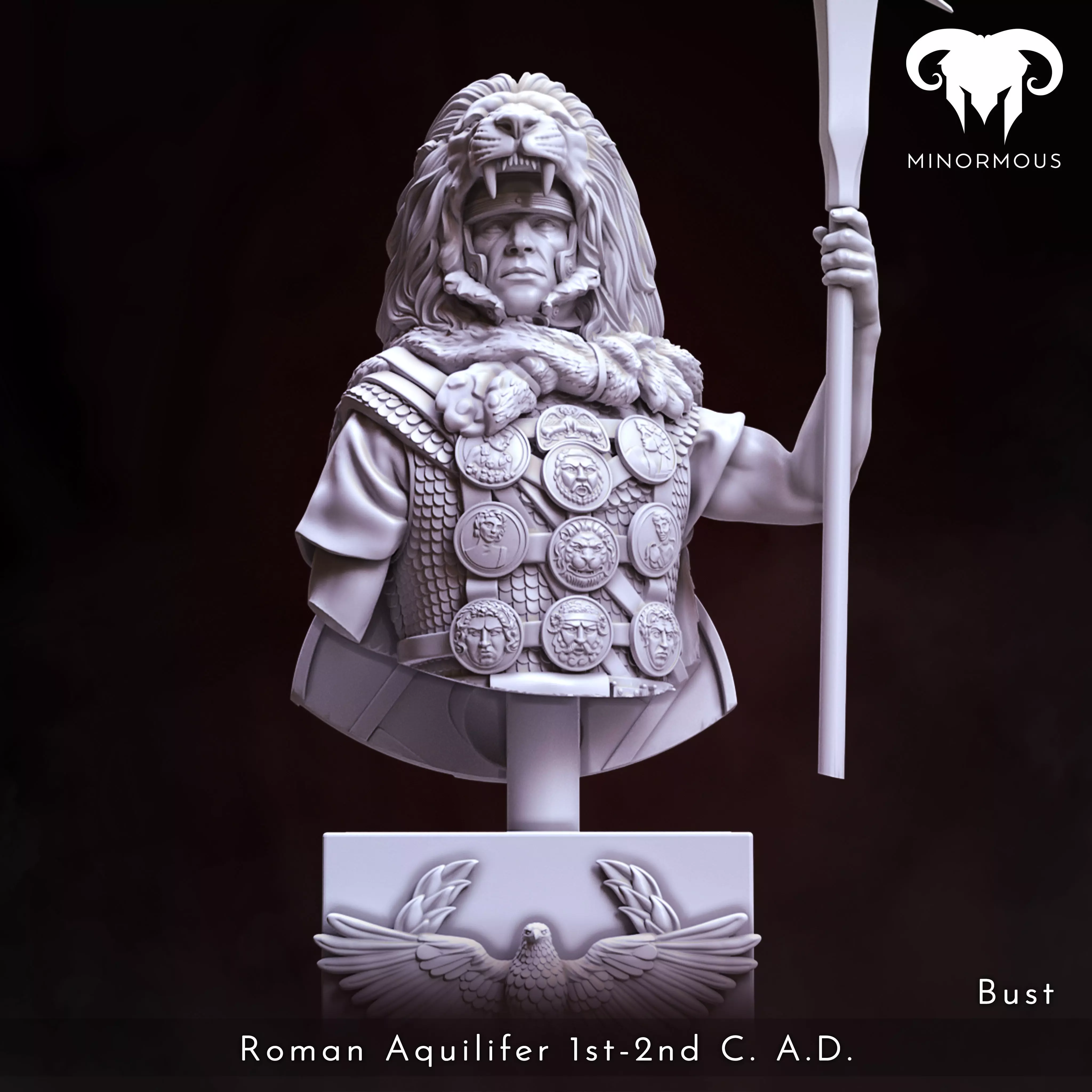 An Aquilifer was a highly respected position in the Roman army, responsible for carrying the eagle standard, or Aquila, into battle. This figure is not only a representation of a powerful and influential figure in Roman history but also a symbol of the Roman army and its valor.