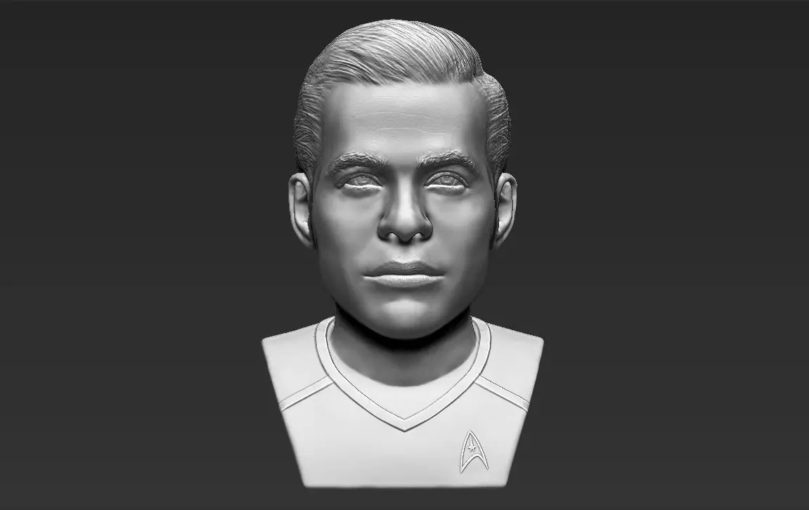 Here is Captain Kirk (Chris Pine) from Star Trek bust 3D model ready for 3D printing. The model current size is 5 cm height, but you are free to scale it. Zip file contains obj and stl. The model was created in ZBrush.