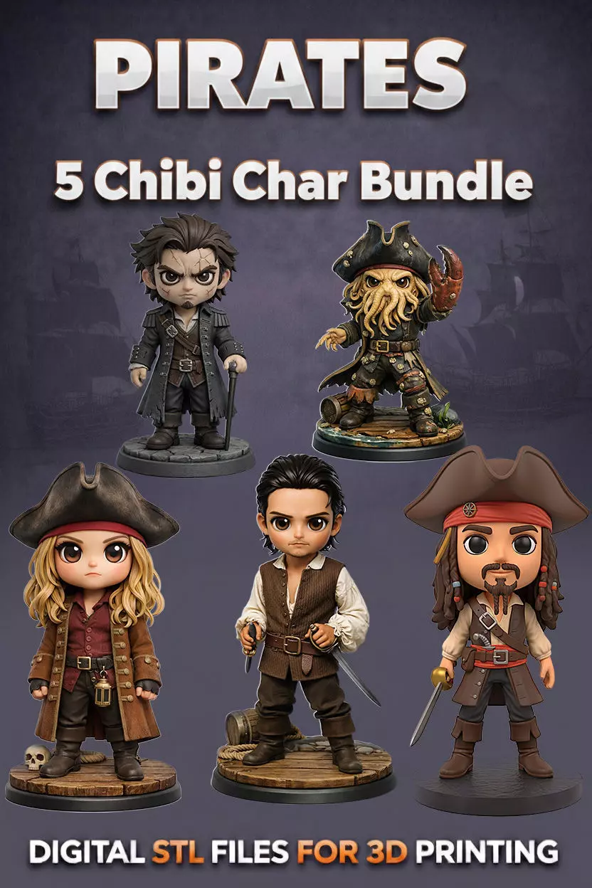Bring legendary pirate vibes to your collection with this fan-inspired chibi pirate 3D figure bundle!This set includes 5 uniquely designed chibi-style pirate characters, each standing on a custom thematic base that perfectly matches their personality and story.