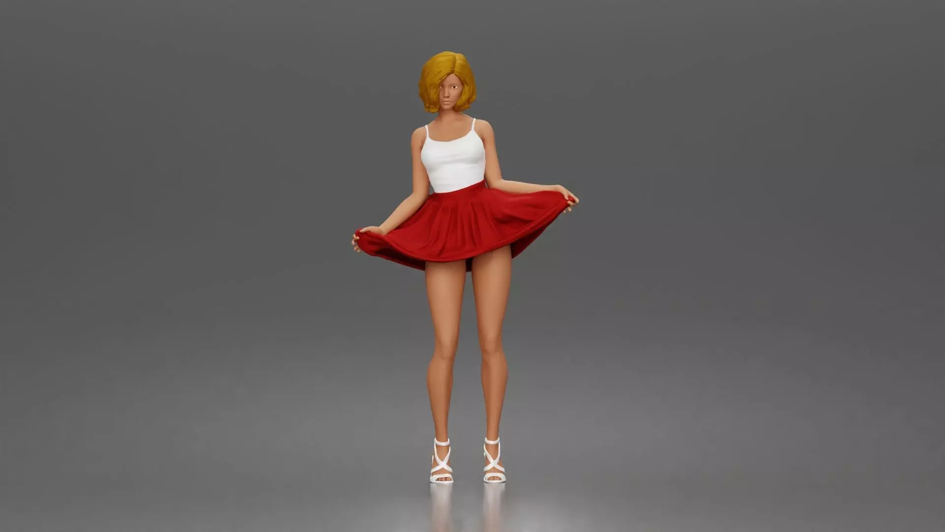 Cheerful girl twirling skirt playfully posing in strappy heels 3D print model