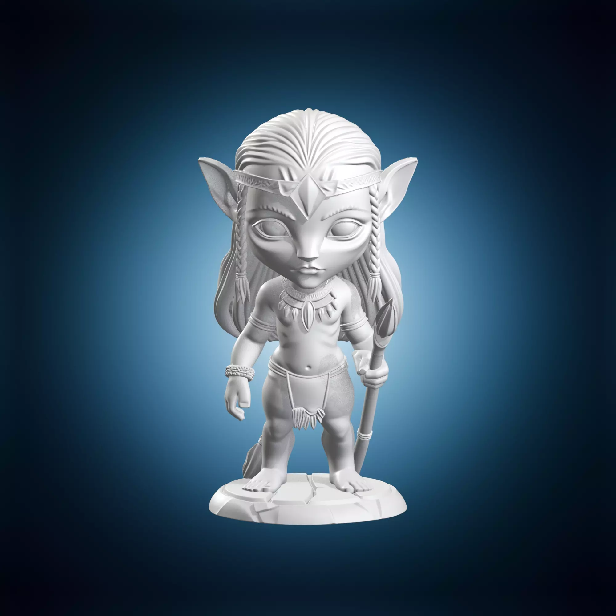 Bring the mystical beauty of Pandora to your tabletop collection with this adorable chibi Navi figure. This miniature captures the essence of the noble forest people in a stylized and charming aesthetic that fits perfectly with other super deformed figurines. The model features iconic elements such as the pointed ears and traditional loincloth alongside braided hair details that evoke the spirit of the cinematic masterpiece. Fans of sci-fi and fantasy will find this model a delight to paint because of its exaggerated proportions and clean surfaces. The big eyes and small body create a striking visual contrast that highlights the alien features in a cute way. Regarding the production of this physical object you should consider the method of manufacturing carefully.