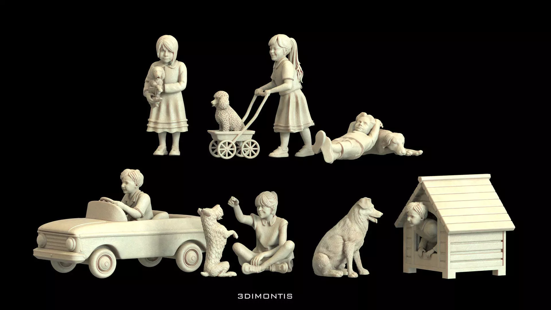 Children and Dogs Set – Scale 1:16 – STL Files for 3D Printing