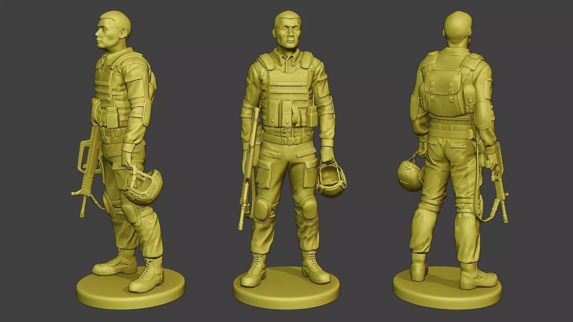 - Soldier with QBZ-95 weapon. Model on stand Pose.
